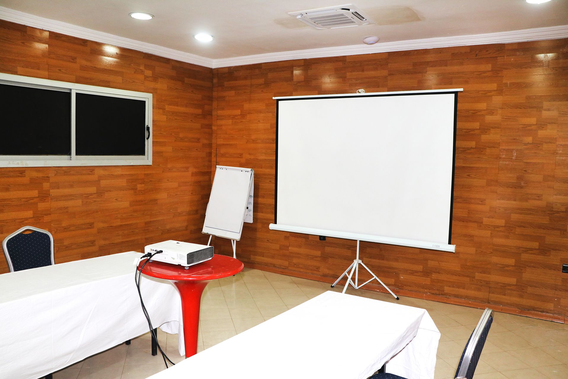 Salle de 45m², capacité 40 personnes en théâtre, 25 personnes en forme U et V, climatisation, wifi, data-show, écran de projection, flip chart, podium, sonorisation, et matériels de traduction simultanés au besoin.